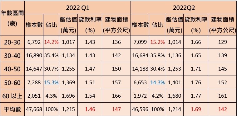 統計中也發現,申貸建物的鑑估值,第二季與第一季只差一萬元,差異並不大,但建物面積從第一季的平均147平方公尺,縮減到第二季142平方公尺,等於空間減少約1.5坪左右的概念。