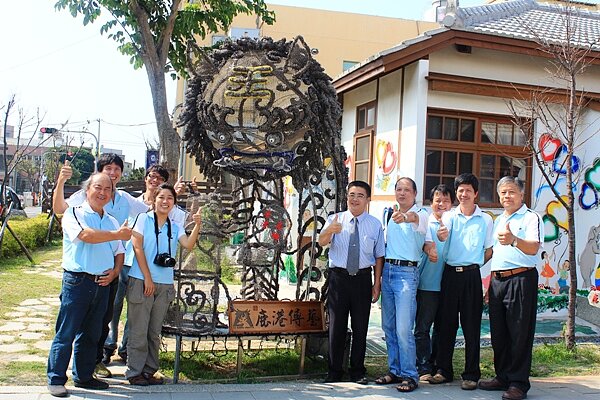 除了個人創作外,鹿港傳藝工坊更打造了專屬於鹿港桂花巷藝術村的入口意象,團主施順榮則將之命名為「弄獅」,表徵著生命的舞動,同時也傳達了傳統花獅之美,其所運用的創作素材也特別令人玩味,從家庭主婦平日刷洗清潔的不銹鋼刷取來創作,妙趣十足更顯獨樹一幟。藝術家施順榮表示,第一次使用如此特別的素材來發揮,因鋼鐵的硬度甚高,使得創作的困難度也增高;但也因此突顯作品的妙點,能讓時間來為花獅上色。