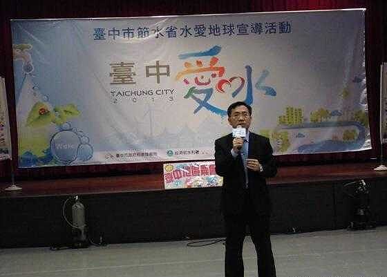 台中市副市長蔡炳坤致辭提醒大家,全球不僅台灣,約有十億人,都有缺水問題,聯合國在今年對余節水議題訂出『國際水資源合作日』,跟國際教科文組織一起從小朋友的教育開始著手,教導養成節水習慣,蔡副事長也強調,平常打開水龍頭要節水,生活食衣住行也要身體力行節水,「生活簡單一點」,才能「台中愛水!」、「水愛台中!」,真正保護我們的地球。