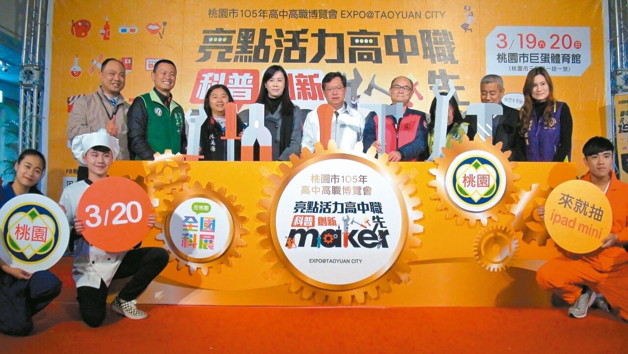 桃園市「105年高中高職博覽會」19日起接連兩天在桃園巨蛋登場,將以「創新、科普」為重點,讓家長與孩子透過博覽會,更加了解每所學校與科系特色,以及產學合作學習資源。