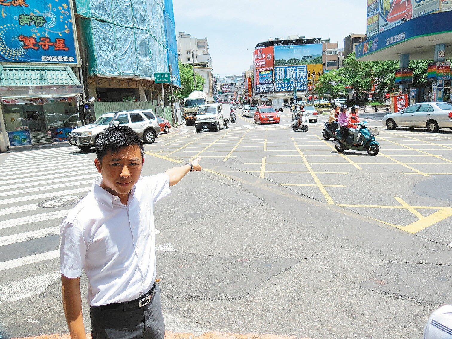 市議員林智堅指北大路與民生路交通號誌與動線紊亂,走在街上像是在「玩命關頭」。(記者張念慈/攝影)