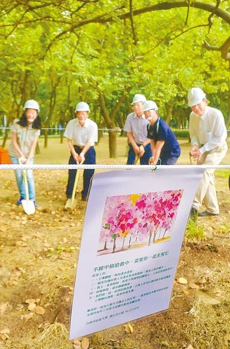 有96年歷史的台南公園,自日治時期栽下台南第1批羊蹄甲,全盛時期達158棵,近年因土壤過度踐踏導致硬化,陸續死亡50棵。護樹聯盟昨向台南市長賴清德請命,建議將台南公園列為古蹟,並盼明年百花祭遷往他處,讓公園休養生息。台南社大老樹棲地復育計畫專案經理林軒漢說,台南公園羊蹄甲樹齡近百歲,過往每到4月便綻放粉紅花海;但近4年來,卻因褐根病肆虐加上過度踩踏、不當打掃落葉致土壤無法呼吸、無法喝水,陸續死了50多棵。