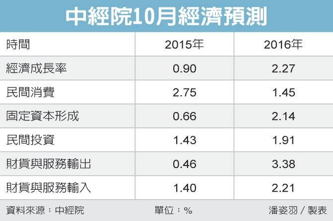 不過中經院院長吳中書日前說,沒有明顯趨勢可帶動經濟發展,展望2016年,經濟成長率表現不會很亮麗。
