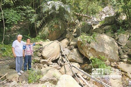 當地耆老朱禮鏡表示,溪流旁有7戶人家,住了近50人,前年蘇拉颱風過鏡,讓大石塊紛紛滾落,全部塞在溪流交界處,每逢大雨,雨水就會轉道沿著一旁的道路順流而下,進而流到民宅,「只要看到氣象說要下大雨,大家都膽戰心驚」。