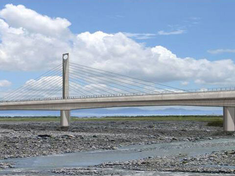 新豐平大橋在98年11月開工,今年7月20日完工,總經費11億1,200萬元。橋長906公尺,主跨徑140公尺、橋塔高度30公尺,配合中央單面斜拉鋼索,造型相當宏偉。其造型以鄉間田野常見之白鷺鷥為意象,以傳達花蓮人勤勞刻苦、愛鄉護土的特質,盡現純樸民風和濃濃人情味的在地風情,橋塔方案係由繁殖期間雌雄白鷺鷥交頸的情誼與構思。