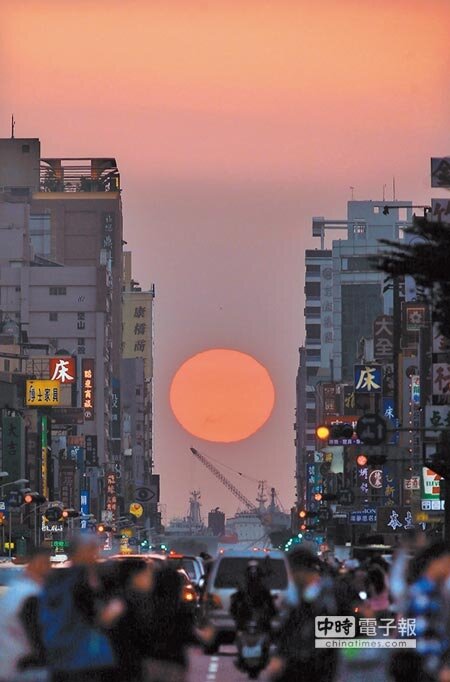去年為爭拍高雄版「曼哈頓懸日」,高雄市府還封街讓民眾拍個夠。 (中時電子報)