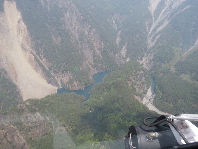 專家空勘評估哈伊拉羅溪的堰塞湖。〈圖片林管處提供〉