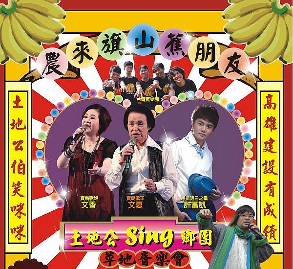 謝局長另外表示,也希望藉由活動表達地方特色,延續草地音樂會一貫的精神,由傳統的民謠、陣頭、及劇場表達方式,讓更多人透過草地音樂會跟土地生活真實對話,進而鼓勵新一代年輕人回到土地,認識關懷自己土生土長的家園,希望大家一起來旗山「蕉」朋友,逛逛老街,享受當地傳統美食,坐在草地上聽一場好聽的音樂會,一起享受幸福的滋味!現場也將分送風箏、威力扇、環保袋,以及台糖公司免費提供的1000支冰棒,絕對讓大家有一個最難忘的旗山老街音樂饗宴!