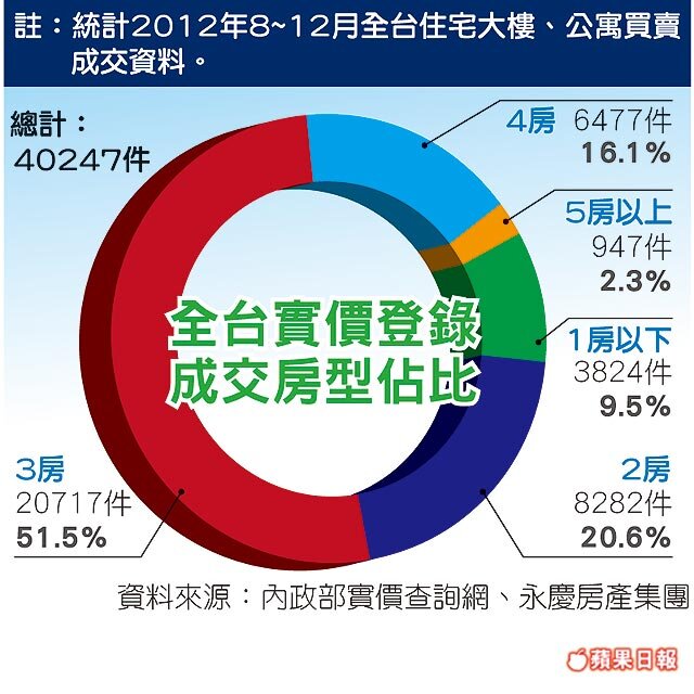 全台實價登錄成交房型佔比。(圖/蘋果日報)