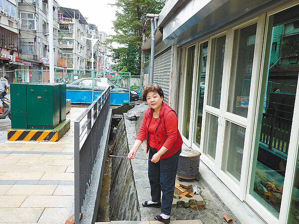 宋美雪說,最離譜的是加蓋工程只做半套,住家和加蓋後的人行步道欄杆間有50公分到150公分不等空隙,住戶出門不慎踩空,就會掉入1.5公尺深的大排水溝,入夜後視線不良更危險。