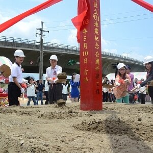 殷盼13年,集港澳同胞愛於一身的「南投縣立921地震紀念公園」,10日上午於南投市隆重進行動土開工典禮,這公園以「愛、生命、希望、和平」作為主要規劃設計意象及精神。921大地震發生迄今已近14年,運用旅港台灣社團促進九二一震災重建委員會(港澳同胞)剩餘捐助款1億餘萬元,歷經多年規劃的南投縣立921地震紀念公園,終於在10日上午10時30分,於祖祠橋旁6.94660公頃基地上隆重舉行開工動土典禮,由代理縣長陳志清主持。