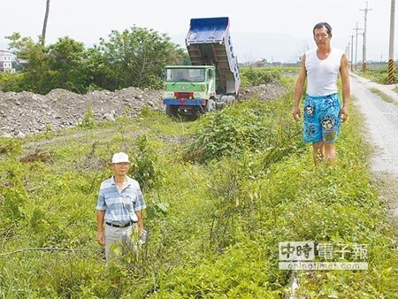 美濃吉安地區農地重劃已點交地主見土地低於鄰旁道路、灌溉溝渠,氣得說「這要怎耕作」盼市府助整地。(記者劉宥廷攝影)