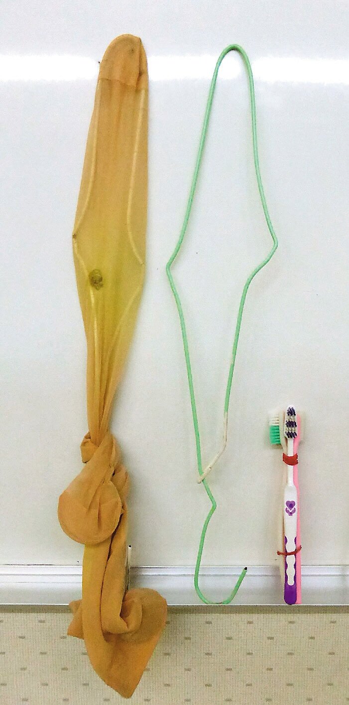 陳惠萍表示,很多櫃子和地面間縫隙太小,可把鐵絲衣架對折拉成橢圓形,再把破襪子、絲襪或舊衣的長袖穿過去,就可以輕易伸入櫃底清理。