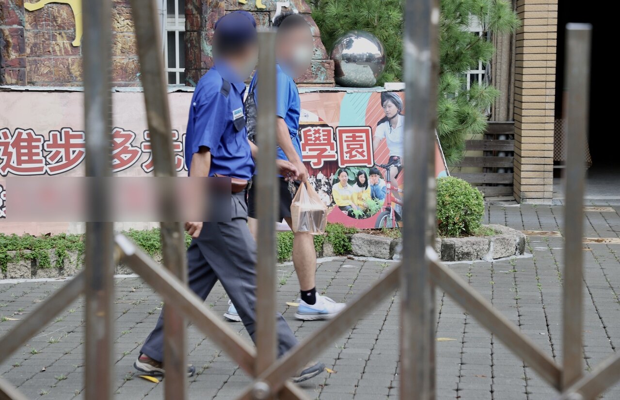 松山區確診國中學生經過基因定序結果發現為Alpha變異株,學校11日全校停課,校園深鎖只有門口警衛及少數行政人員到校加強防疫管制。 記者林俊良/攝影