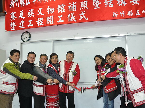 縣長邱鏡淳和副縣長章仁香等多人日前特別前往文物館頒發建照,拿到建照之後,邱鏡淳等多人也立即以敲牆壁動作,象微內政結構安全補強整建的工程正式開工。並部落長老口唸祈禱文,用米酒和山豬肉敬拜祖先,表示已向賽夏族祖先報告這個好消息。賽夏族居住於新竹縣與苗栗縣交界的山區,人口約有七千多人。又分為南、北兩大族群。北賽夏居住於新竹縣五峰鄉,南賽夏居住於苗栗縣南庄鄉。