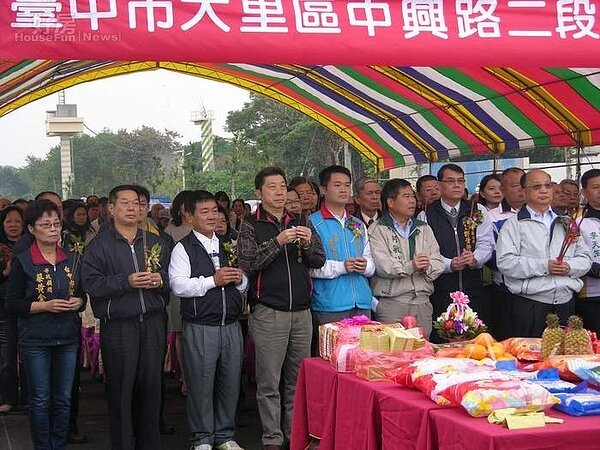 台中市大里區中興路日新橋至南門橋開闢工程20日通車,市長胡志強偕當地耆老林振衣、林洪素英一同走過,使大里區和東區、南區連成一氣,開心直說不必再繞遠路,市議員張滄沂、李天生和市政顧問蔡黃金雀等二百多人參加。