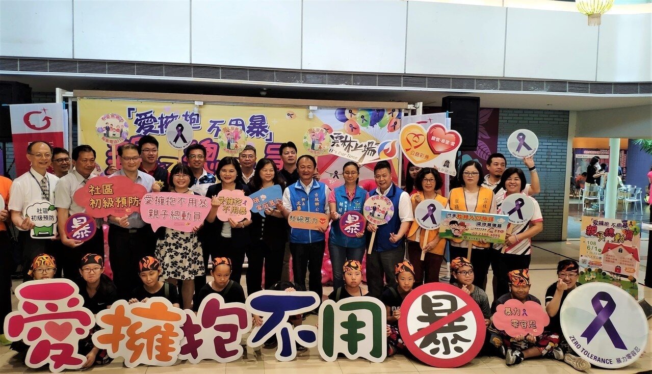縣長張麗善等人今天出席「愛擁抱、不用暴」宣傳活動,與勵馨基金會、雲萱基金會等社福團體,呼籲大家共同站出來「向家暴說NO!」。