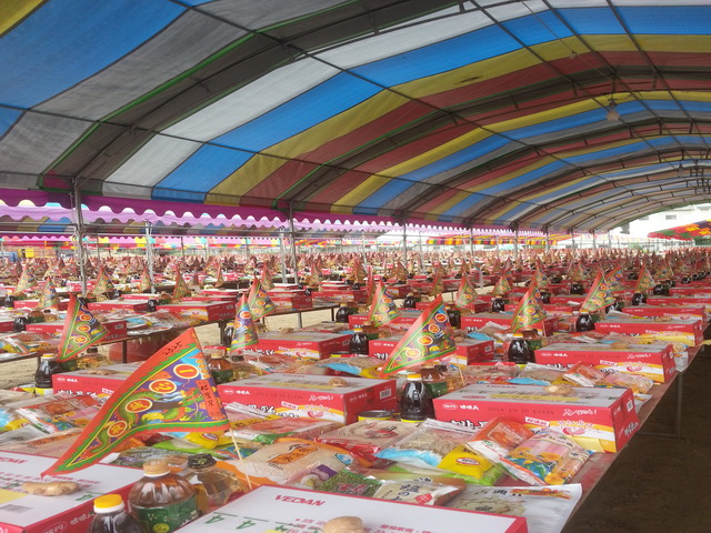 兩地並分別進行大規模普渡,共計擺設近7千多桌普品,場面盛大,法會連續舉行3 天,20日下午並將邀請市長胡志強親自到場主持普施開香典禮。