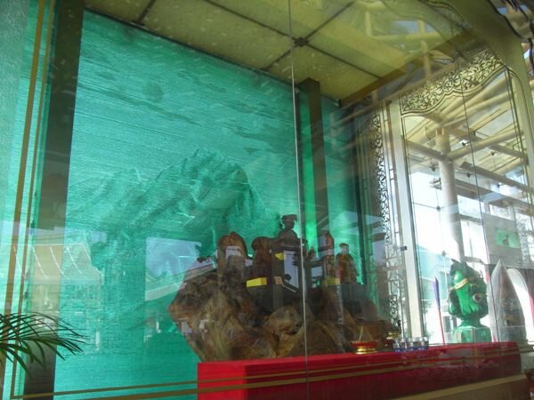 台灣護聖宮玻璃媽祖廟,建築形式相當特殊,可以說是目前全世界唯一以鋼骨跟玻璃為主體建材的廟宇建築,兩邊的走廊上面使用鋼骨架構,代替傳統木材,並且以現代工法展現古式寺廟建築型式,另外整座寺廟的內外牆及屋頂一共用了七萬多片玻璃裝飾而成,白天會隨著陽光折射角度不同,反射出不同色彩的耀眼光澤,到了晚間,玻璃廟則是以最新科技的LED燈光照射,使得整座廟宇呈現出柔和的燈光輝映,讓人仿佛置身在琉璃般水晶宮殿。