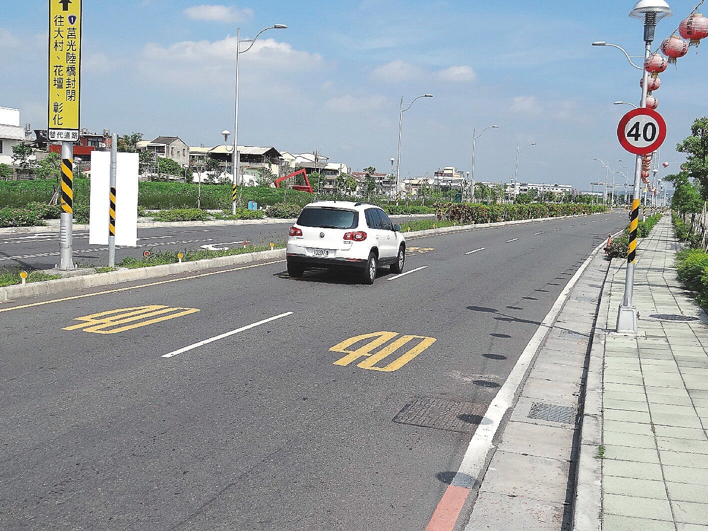 員林鎮剛完工通車的30米環鎮道路,限速40公里,引起民眾批評。(記者何炯榮/攝影)