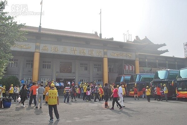 耗資三十五億興建的外埔無極三清總道院,在國內擁有七千多間的友廟,每逢假節日出現遊覽車(人)潮,帶給對地方至高的觀光、繁榮及商機。(記者陳榮昌攝)