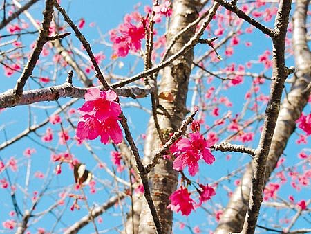 櫻花盛開季節來臨,各地櫻花紛紛綻放,想賞花的民眾不訪趁著休假去踏青賞花。(圖/盧金足攝)