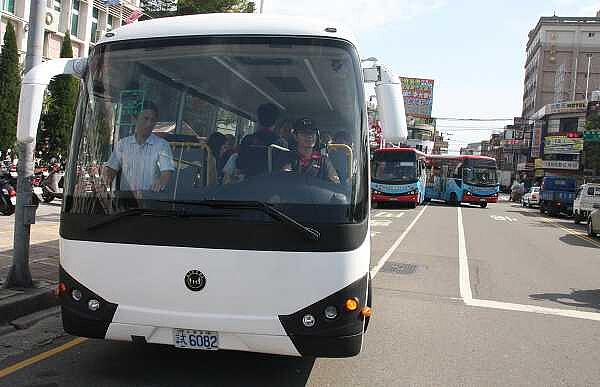 圖說:今年開辦平鎮市免費市民公車(後),明年6月底以前有9輛新電動中巴(前)為平鎮效力。(記者潘瑞如攝)