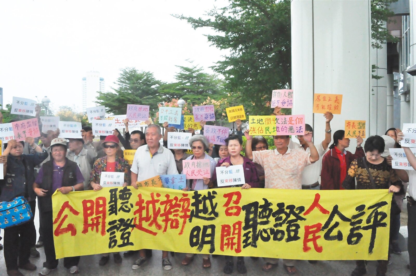 反南鐵東移自救會成員昨到台南市議會陳情,要求開聽證會,並訴求不能以工程之名,犧牲小老百姓身家與財產。市議員謝龍介接受陳情,強調政府應保障住戶人權及居住正義,不能犧牲沿線居民的權益。