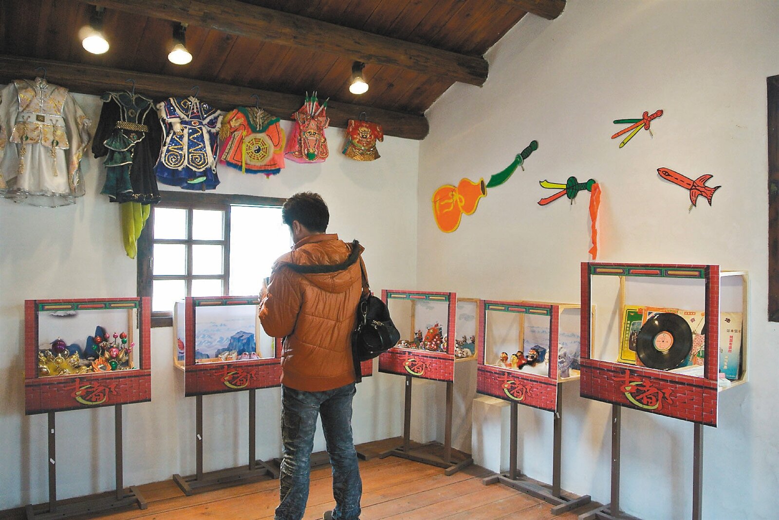 安平區安平路850巷內的古都偶戲館,展出各式木偶,現場還有布袋戲演出。(記者修瑞瑩/攝影)