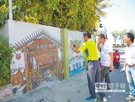 七股龍山社區馬賽克磁磚牆深具設計感,吸引居民搶照。