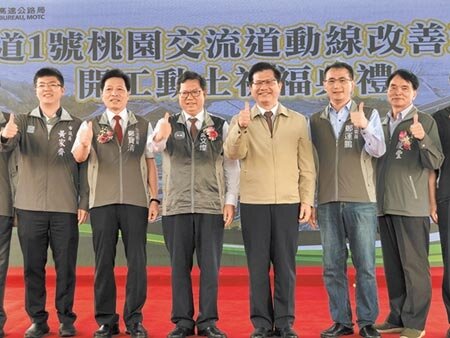 國道1號中正北路交流道將新增南入及北出匝道,交通部長林佳龍(右三)和桃園市長鄭文燦(右四)29日主持動土典禮,將力拚2021年5月完工。(蔡依珍攝)