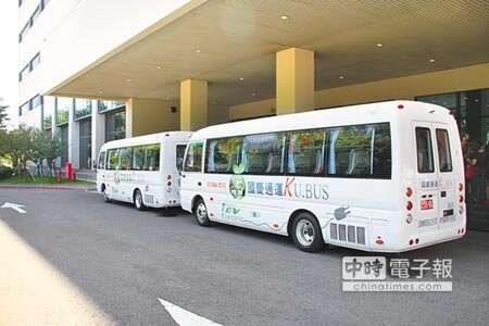 台積電響應節能減碳,將竹科廠區9台柴油版接駁巴士,全面換成電動中型巴士,創下竹科電動車先例。(截取自中時電子報)