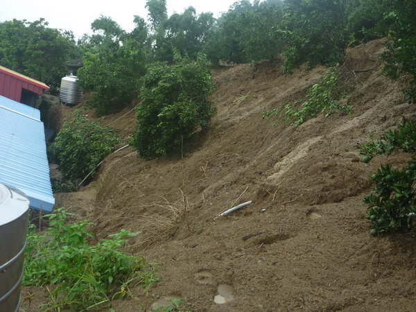 通往茂興里石排巷的產業道路,也有一處上邊坡竹叢、土石滑落路面,造成當地十幾戶住家與五、六十戶果園居民的交通中斷,區公所據報後已展開搶修中,天候放晴的話,預計三天內可搶通。
