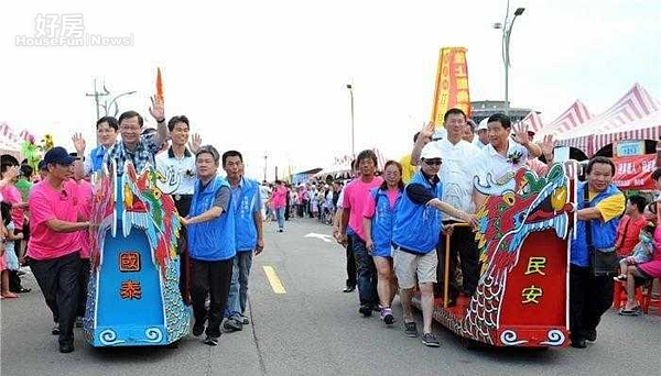 慶祝端午節,由桃園縣發展出來的陸上龍舟競賽,日前在竹圍漁港遊艇碼頭登場;熱鬧的漁貨義賣和亞洲車神帶領的摩托車特技表演下,共有100支隊伍報名參賽,盛況超過往年,縣長吳志揚期盼這項全國獨一無二的陸上龍舟活動一年比一年精彩。