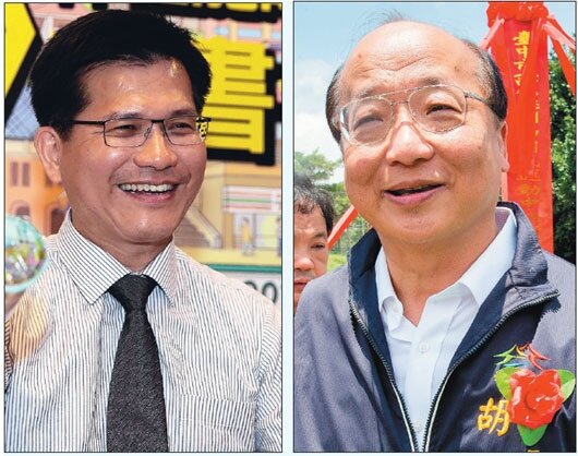 蘇嘉全昨指外傳國民黨正募集資金,疑要為胡志強(右圖)賄選,胡獲悉後意有所指說林佳龍(左圖)財力雄厚、在外撒錢;林指國民黨模糊焦點,眾人皆知國民黨最有錢。(記者黃士航/攝影)