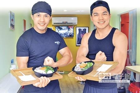 健身風氣興盛,北、桃等地有業者趁勢推出「肌肉猛男餐」,這種原不見於市面的水煮便當,一份包含水煮肉品、蔬菜、五穀雜糧飯的健身餐,加上猛男店員當活招牌,雖然價格是市售便當2倍,仍賣得嚇嚇叫。