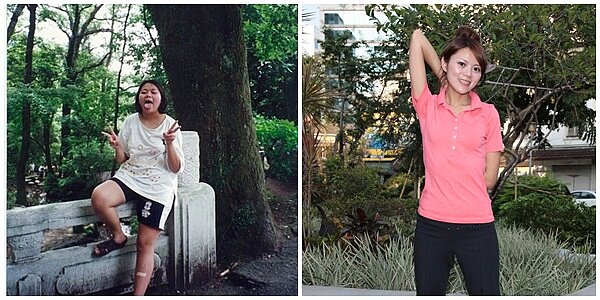 ↓大同區民生西路的美食太好吃,佳穎高中就胖到80公斤(圖左),跟現在是不是差很大呢