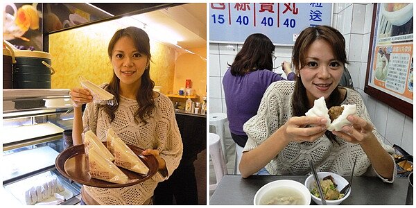 我得先教大家不胖的秘訣,飯前先喝一碗湯,增加飽足感,之後才不會吃過量,不過,來到這家店通常又會破戒,手掌大的肉包一個才賣15元,買十送一;皮Q是必備,內餡更特別,不是便利商店那種豬絞肉,是豬肉丁拌醬油蔥花,打開來撲鼻的肉蔥香,超級美味;還有招牌的北部粽,包上蛋黃、栗子、赤肉、香菇,配上拌炒胡椒的糯米,淋上每天現煮的微辣甜醬、蒜茸醬油,真是人間美味,也是老店才有的真功夫。