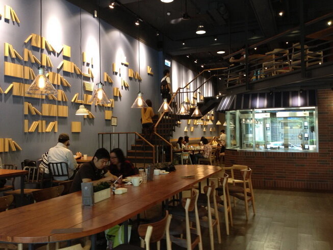 ↓西湖捷運站的擴邦麵包店裝潢超有型