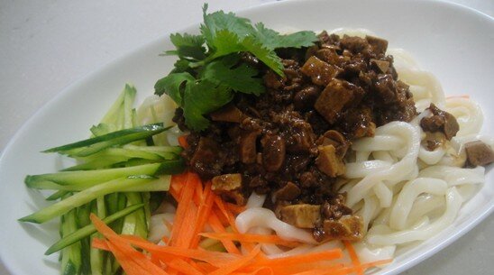 ↓戴媽媽用自家頂樓栽重的小黃瓜、紅蘿蔔做搾醬涼麵