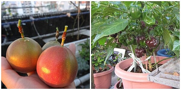 相較於樓下的車水馬龍,絕對的都市繁榮市況,到了屋頂,景況全然不同。隨著季節轉換而常綠意盎然,時有各色花朵盛開,時有結實瓜果,時有新鮮時蔬,還有鳥叫蟲鳴。別以為我們霸佔了頂樓,不讓鄰居們共享開放空間,我家私角落,只利用位於頂樓私家屋頂的L型區塊(沿著建物的L邊),沒有違建問題,做好屋頂防水就行。