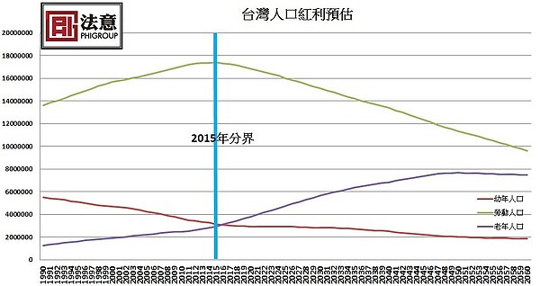 長期來說,台灣的人口紅利在2015年達到高峰,之後就步入衰退期(以勞動人口做代表)。勞動人口(綠色線)是國家財富的主要擁有者,這段期間舉凡結婚、生育、投資,都會觸及房地產這個話題。隨著勞動人口持續的下滑,以及幼年人口(紅色線)下滑,未來房地產的需求端是堪憂的。