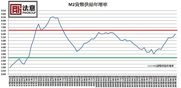 從資金面上來看,中央銀行公布10月金融概況,廣義貨幣供給M2的年成長為5.99%。中央銀行對2013年設下的貨幣成長目標區位在2.5%~6.5%。