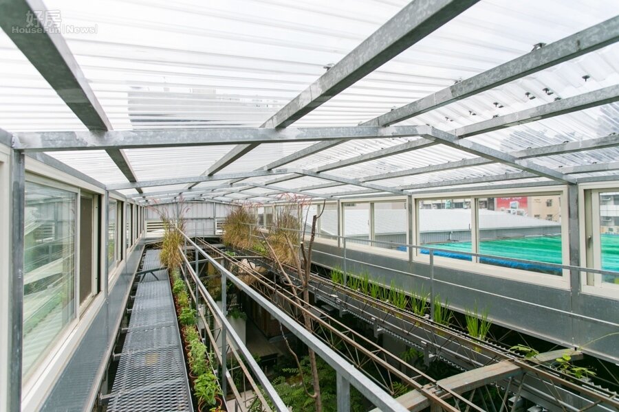 屋頂上的貓道則是樹合苑夥伴們的植栽試驗天地。