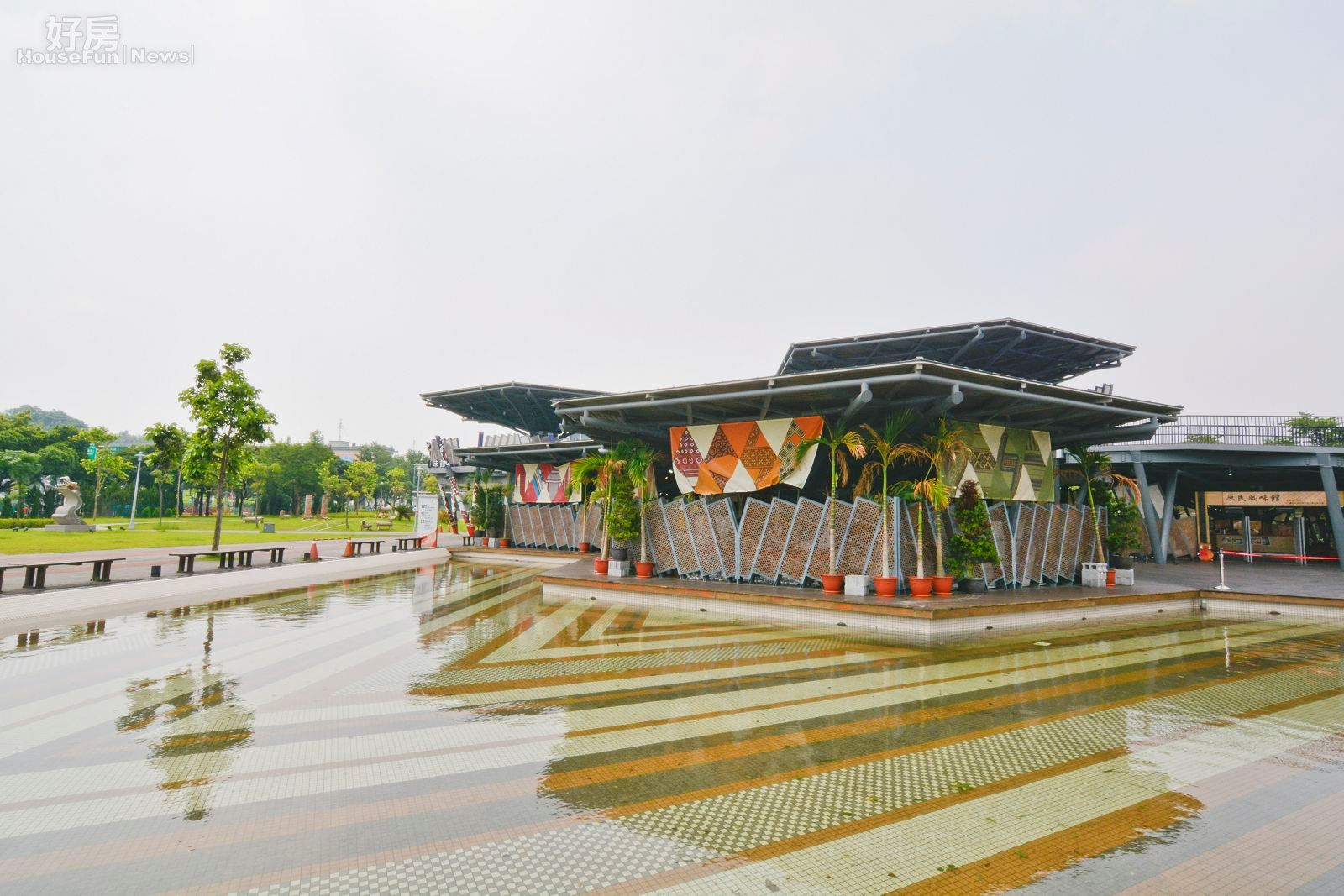 花博公園美術園區 在中山美術公園內的原民風味館,本身就是結合了環境所創造的藝術品,在大水池之中矗立了一座餐廳,水中倒映了餐廳本身,在美麗倒影的襯托下,形成一幅美麗的畫作。(圖文/好房News記者 陳韋帆) 794 上一張 下一張