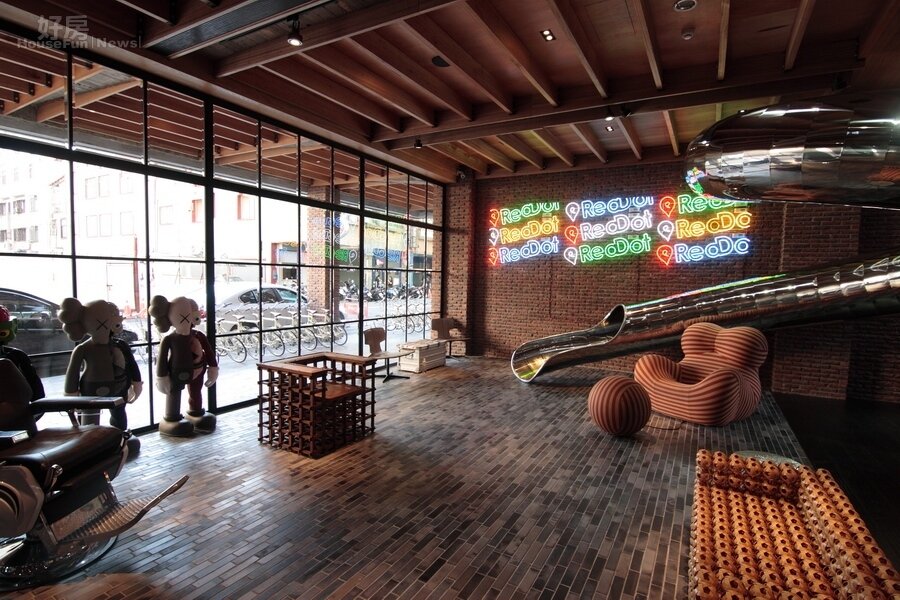 踏入紅點飯店第一感覺就是彷彿來到了某個文創基地,整個大廳就是藝術展展示空間。