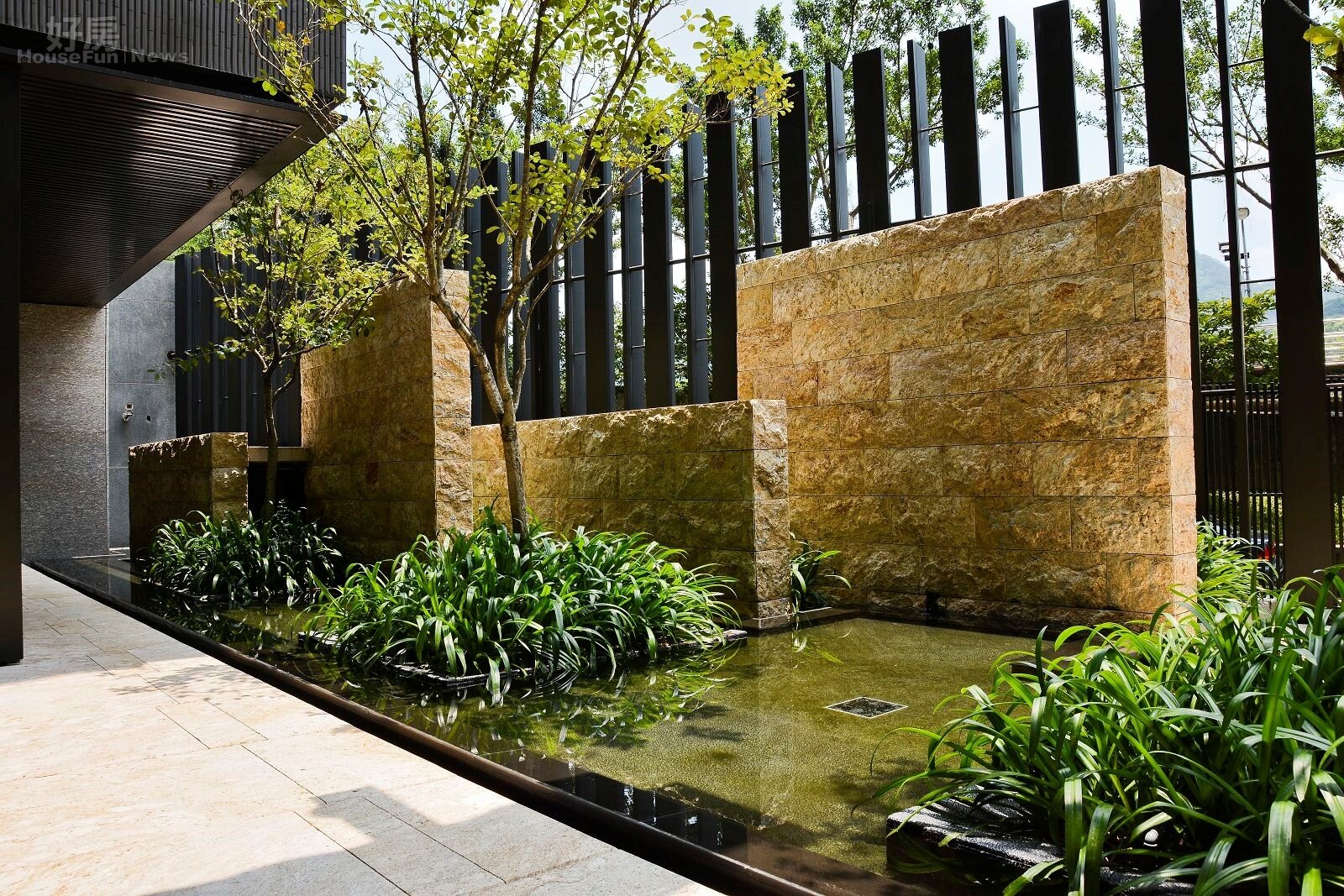 後院的造景大量使用石材與花草樹木,融入整個自然環境中