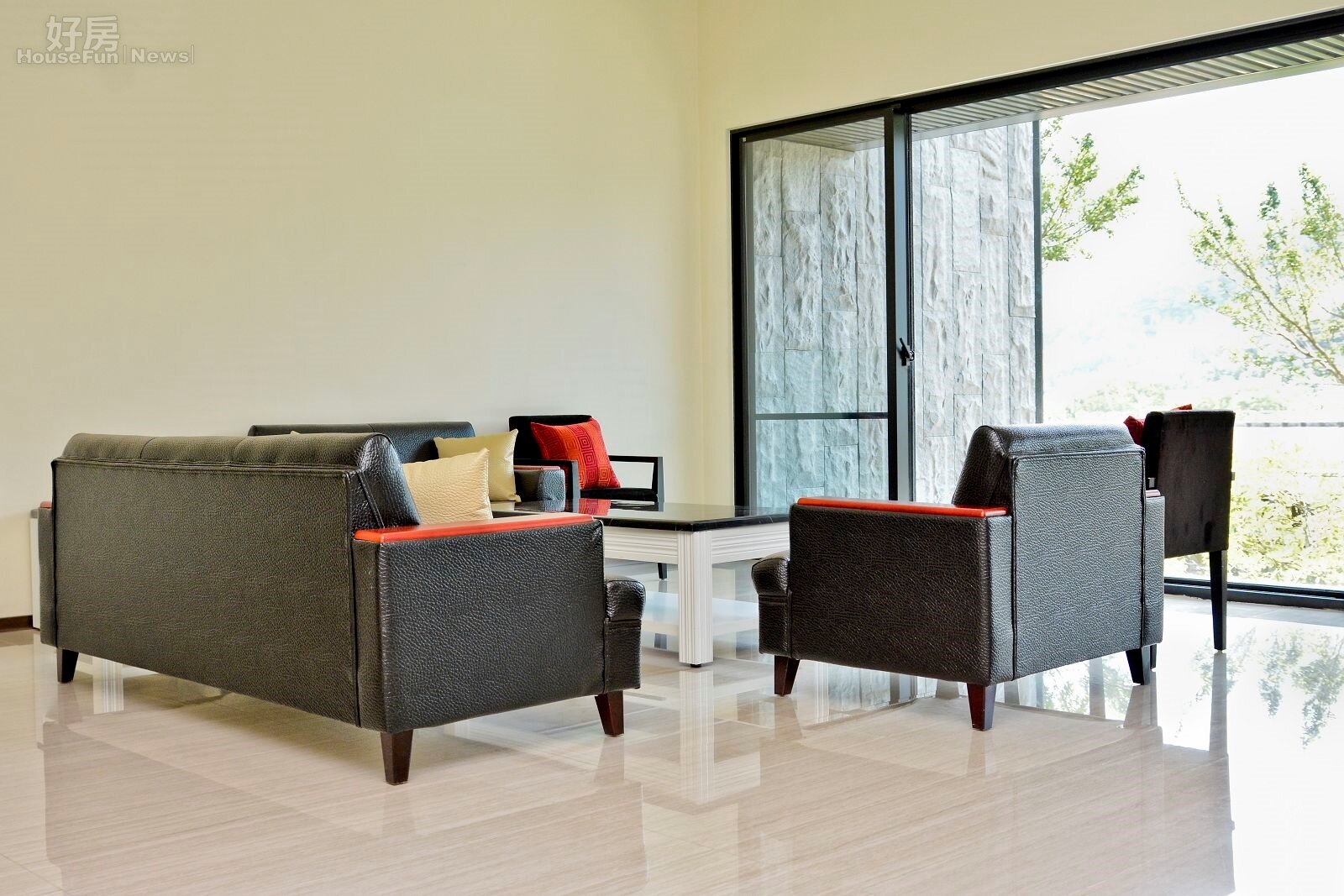 客廳就可以透過大片落地窗,直接欣賞到戶外山景水景