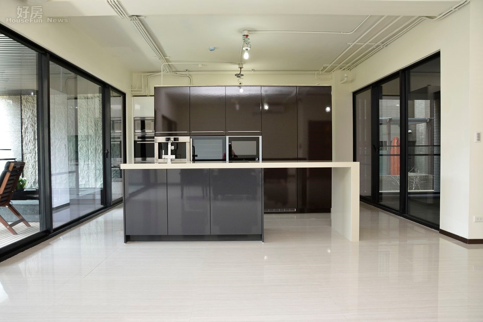在大空間中,廚房外除了烤箱等器具外,也多放置了一個吧檯
