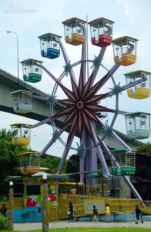 比起大型遊樂園或百貨公司的摩天輪,兒童育樂中心的摩天輪顯得迷你許多。